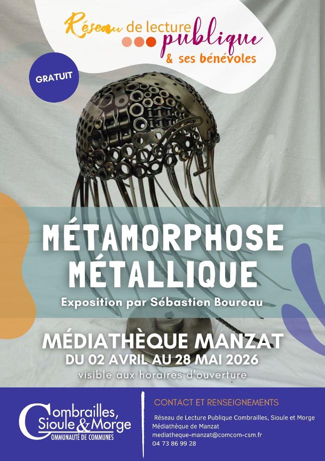 Le réseau de lecture publique Combrailles, Sioule et Morge vous donne rendez-vous ce samedi avec Sébastien Boureau, artiste exposant actuellement à la médiathèque de Manzat.