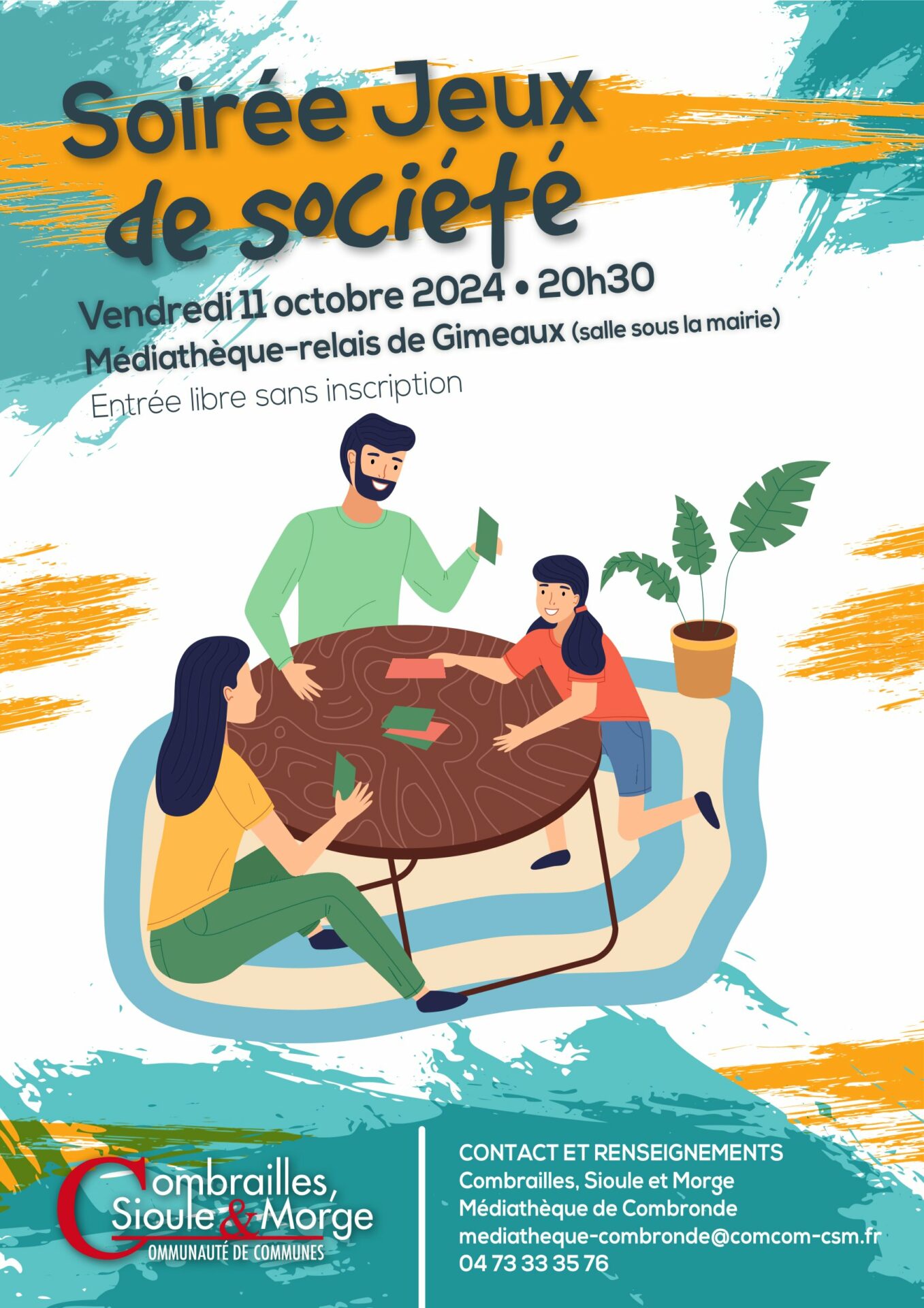 Vendredi 11 octobre 2024 à 20h30 à la Médiathèque-relais de Gimeaux soirée jeux de société