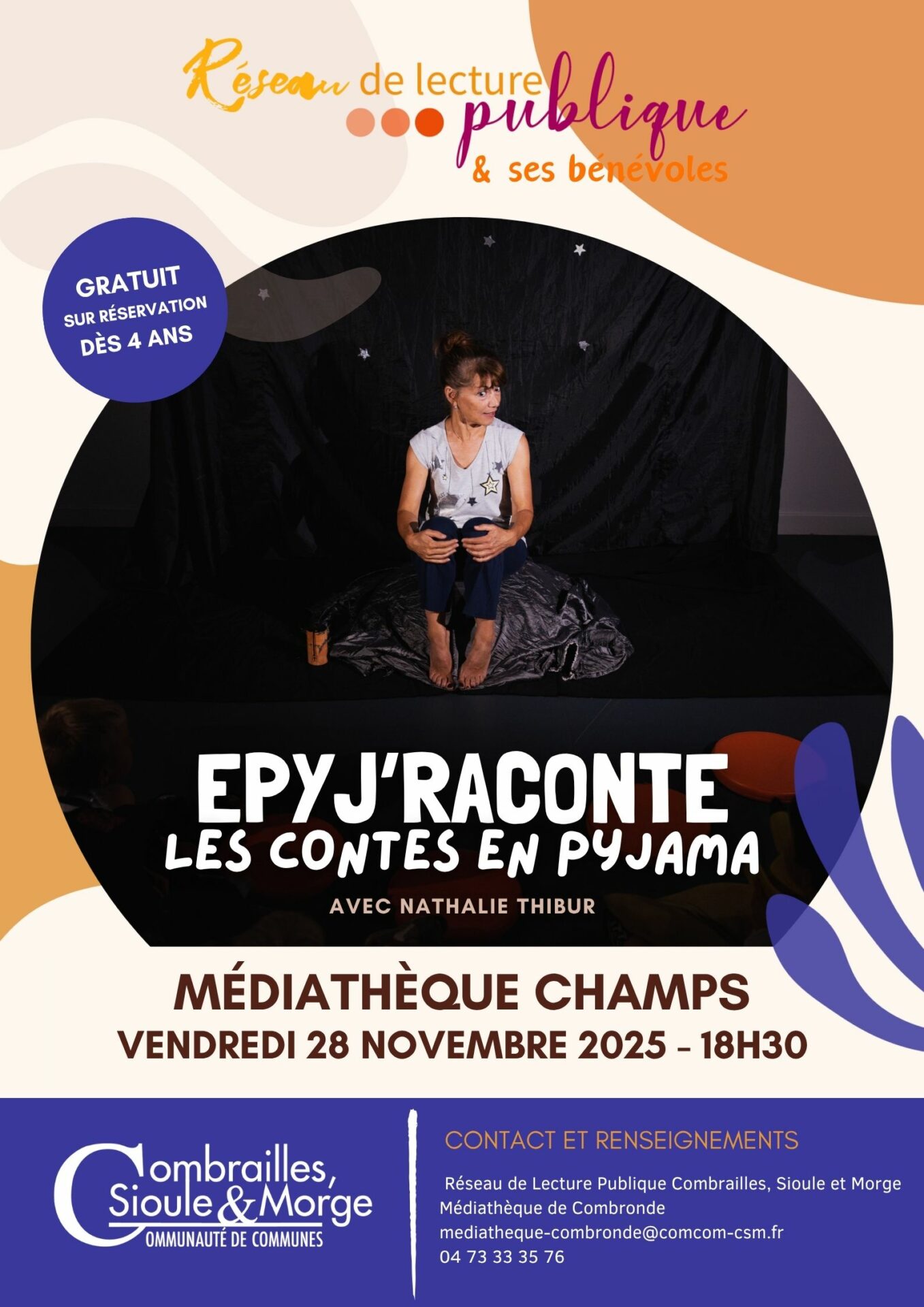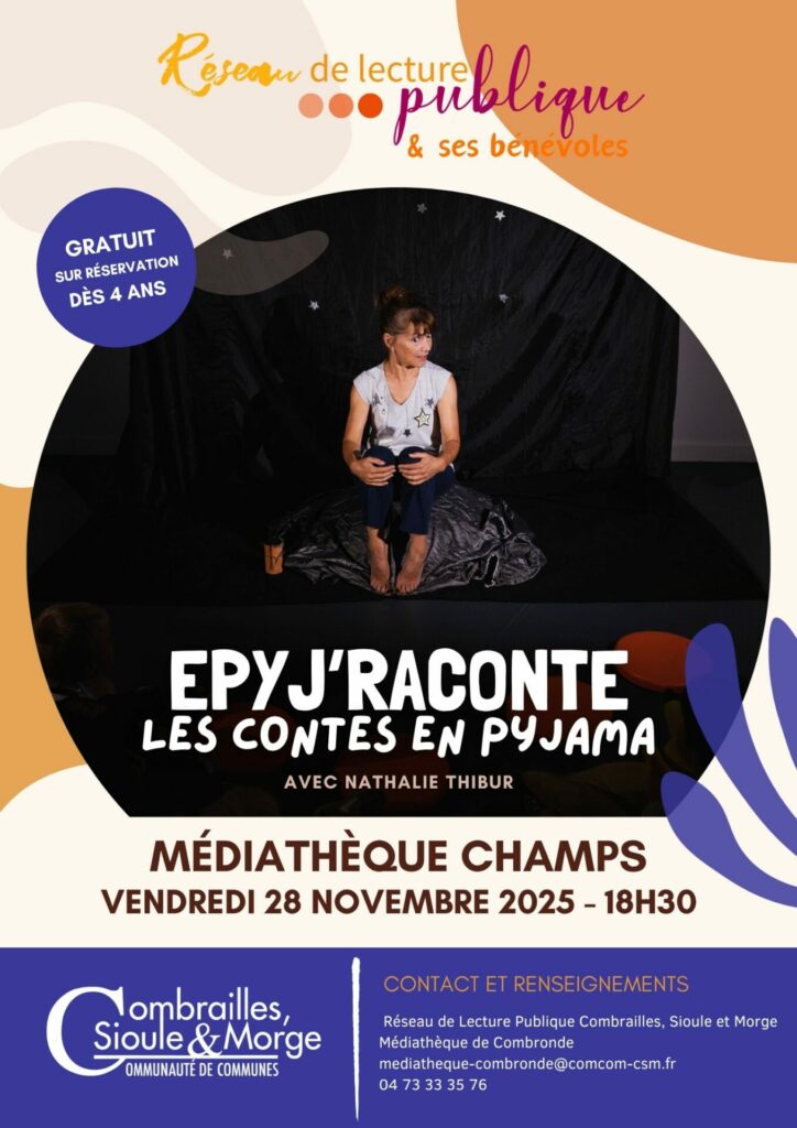 La médiathèque de Champs et le réseau de lecture publique de Combrailles Sioule et Morge proposent une séance de contes en pyjama avec Nathalie Thibur le :