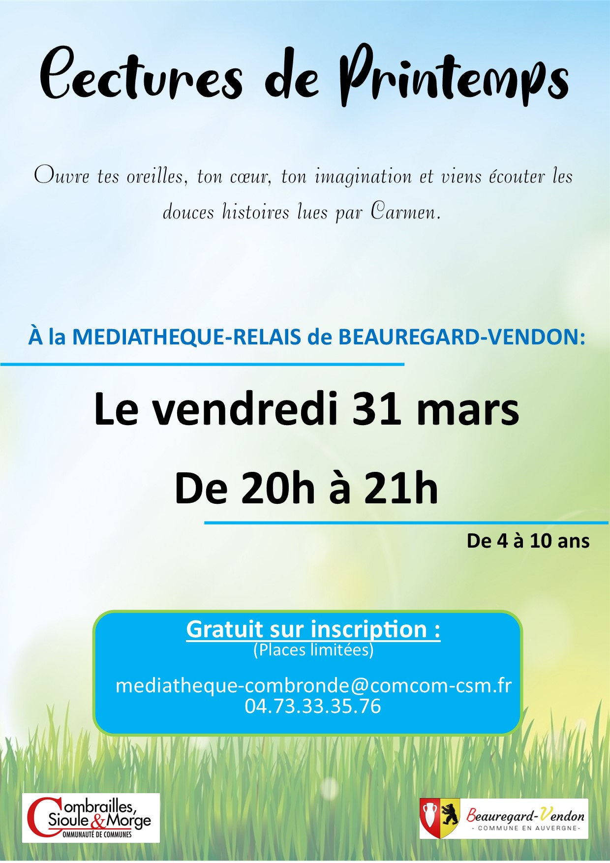 Vendredi 31 mars 2023 de 20h00 à 21h00 à la médiathèque-relais de Beauregard-Vendon Partager : Enfance