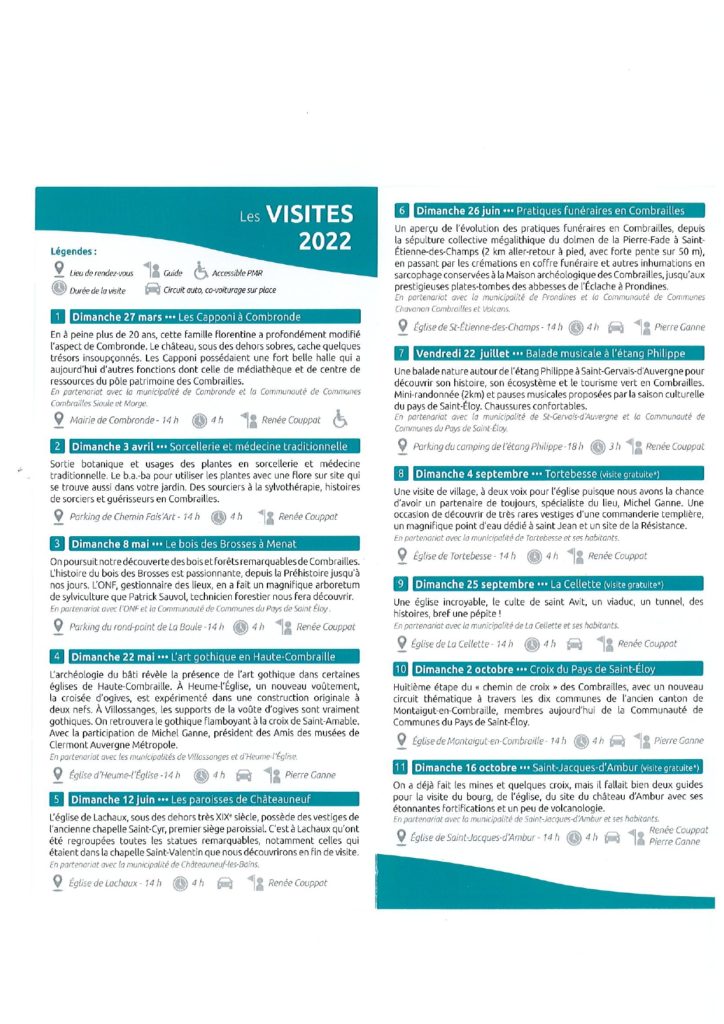Visite guidées du patrimoine 2022 organisée par le Syndicat Mixte pour l’Aménagement Des Combrailles